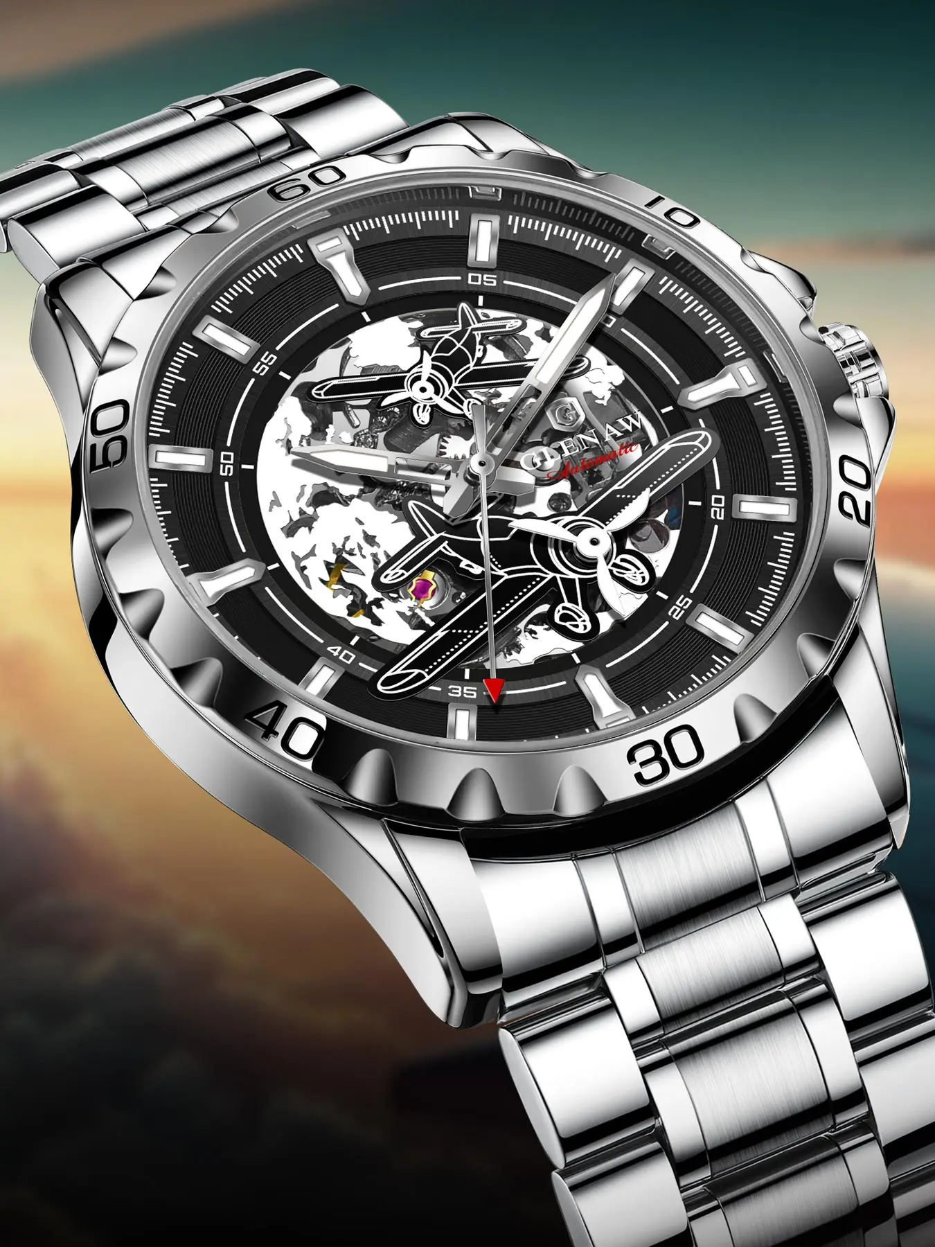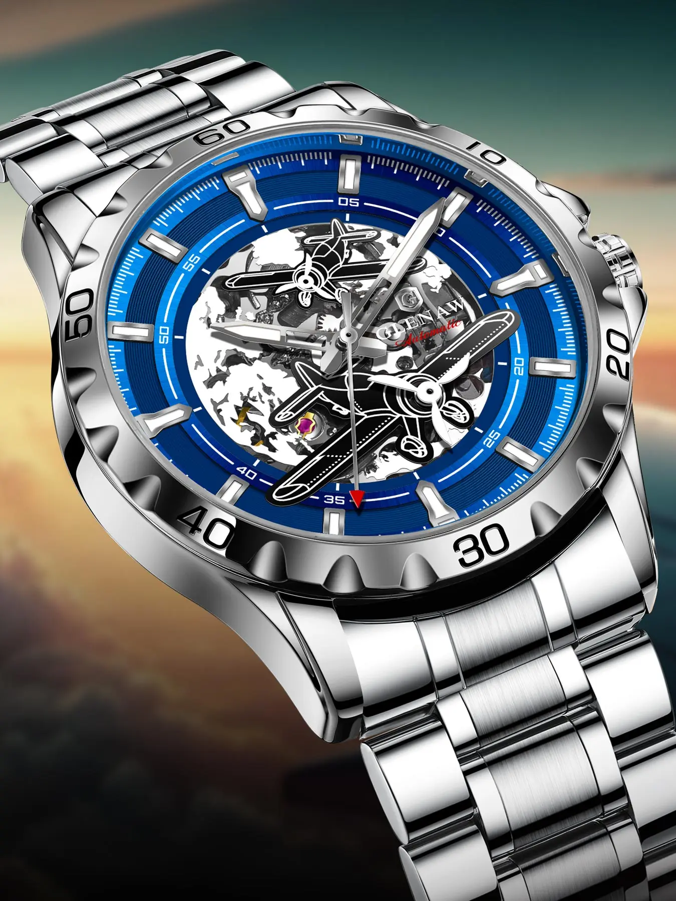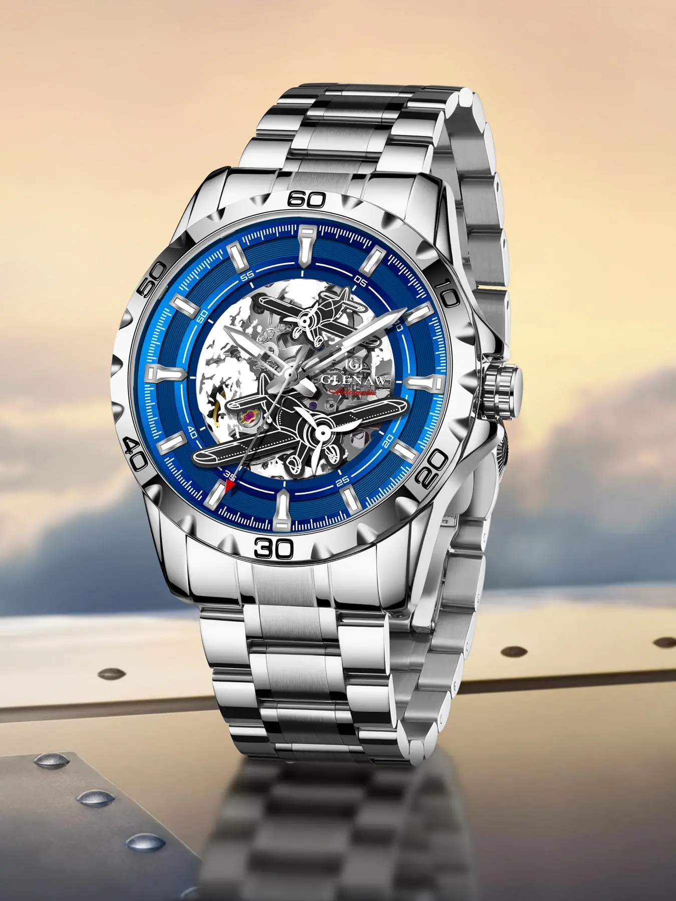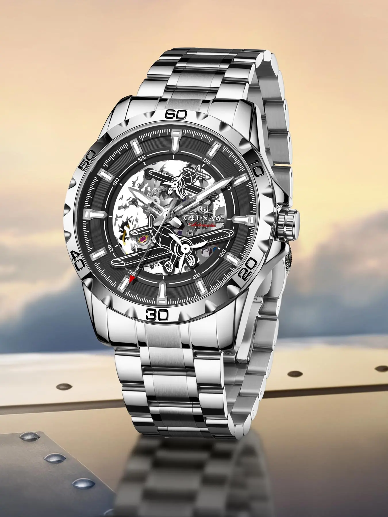 Glenaw Aircraft fully automatic mechanical men's watches, multi-color, trendy and fashionable personalized top brand watches