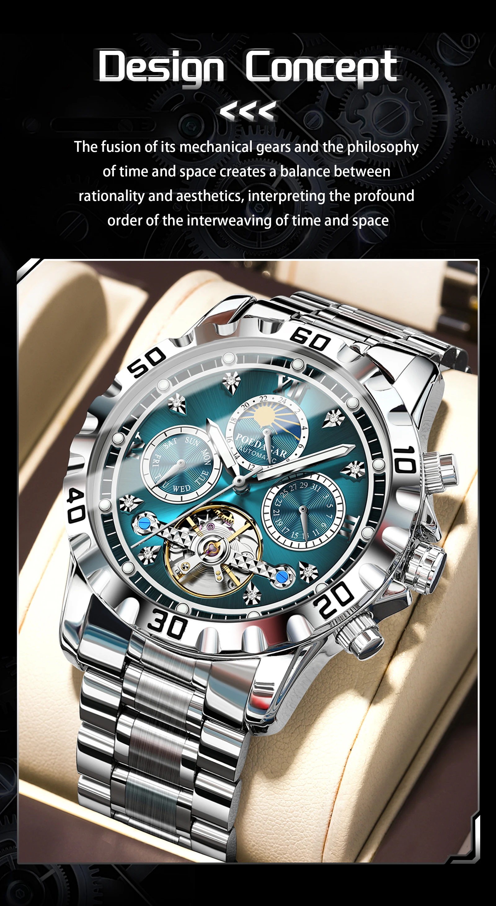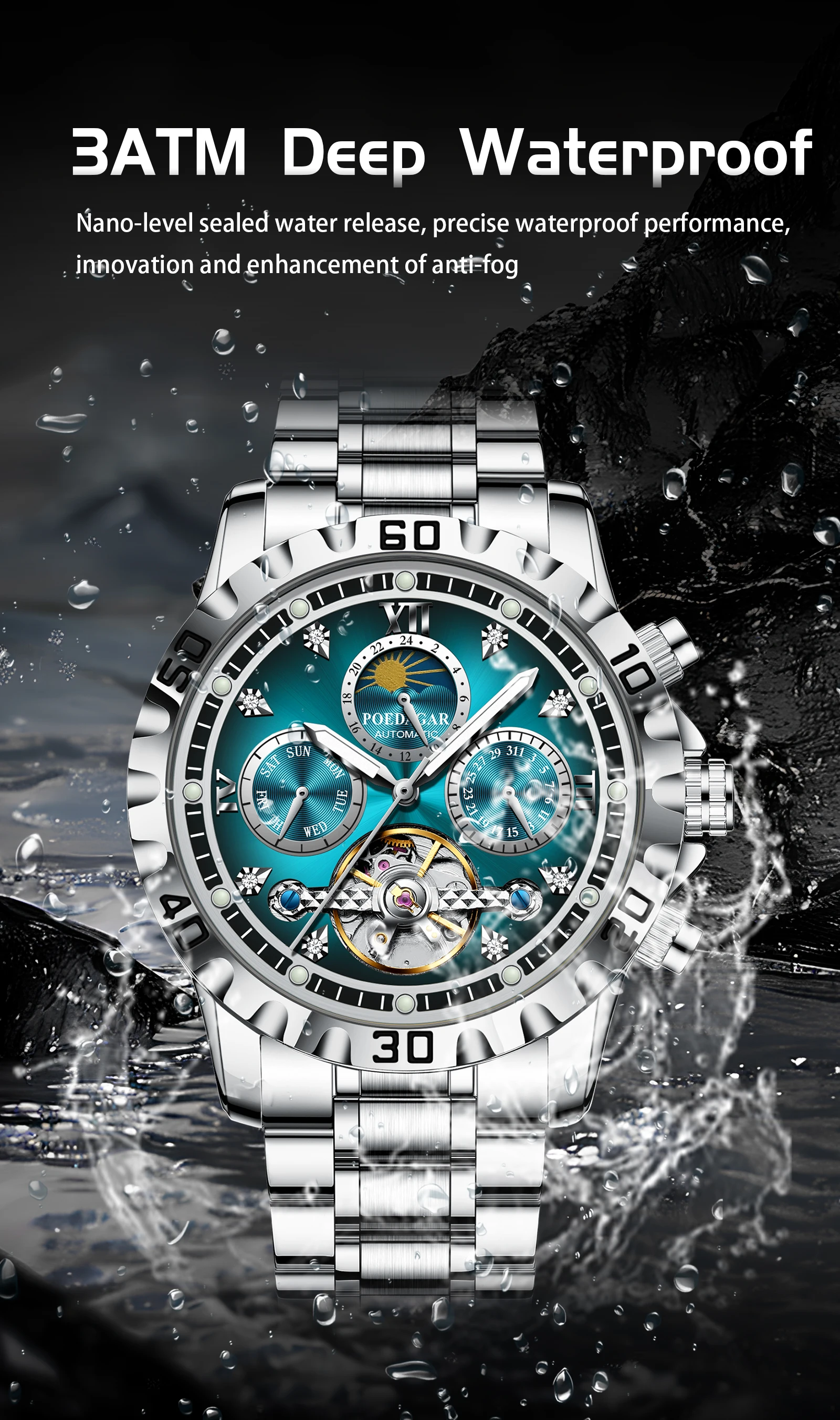 Feature: tourbillon,Skeleton,Luminous,Complete Calendar,DIVER,Week Display,water proof,Luminous